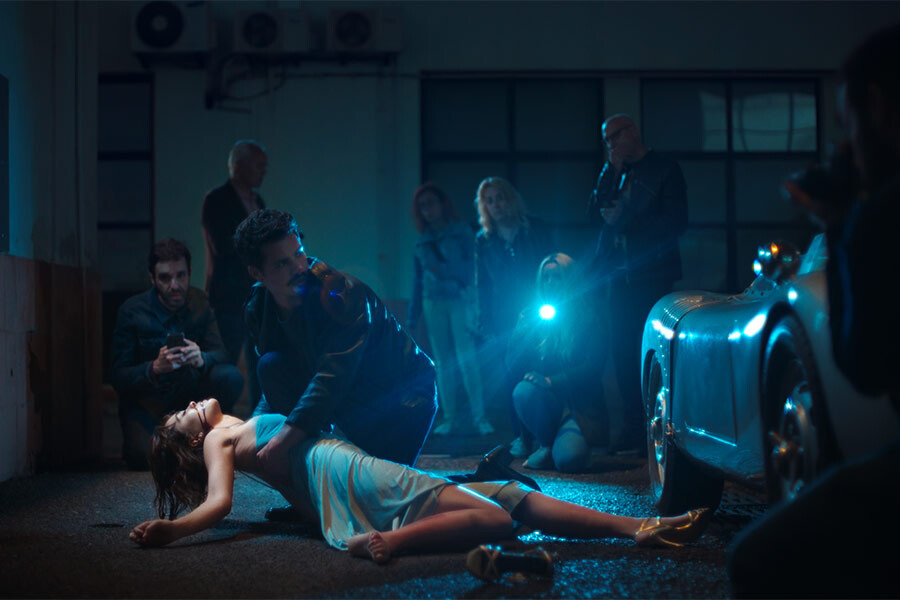 Um filme que se concentra nessa incestuosa relação entre o desejo a ser consumado e a depravação nunca ocultada, enriquecida numa trip estetizada e sanguinariamente glamorosa de um serial killer (Matthieu Charneau) atingido pelo constante efeito “fregoli” (todas as suas vítimas são representadas pela mesma face – Joana Ribeiro – assim, como o seu redor, homogéneo) e pela língua inexata e imperceptível aos nossos ouvidos (somos “atirados” a um enésimo “não-lugar”). Aqui, o seu “fetiche” (menorizando a sua vontade de matar é claro!) é interpolada por um incidente / acidente que o converte numa equivocada estrela viral. Para a insaciável fome existe uma veneração messiânica que o transporta num (nunca justo) dilema moral. Mas a racionalidade não é inabalável perante a cedência pecaminosa e carnal dos seus desígnios (Conceição joga ainda com os seus “lugares-comuns” para tracejar uma linha direta entre as efémeras ambições [fama] pela negritude da sua caixa-negra [a fantasia]).