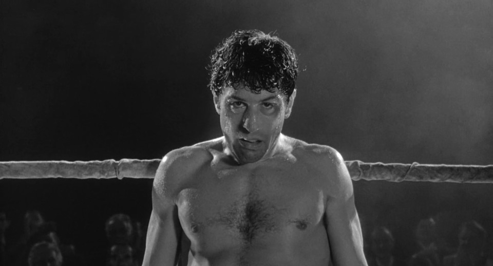 Enquanto católico fervoroso (nunca cedendo ao radicalismo, diga-se por passagem), Scorsese “pinta” os arcos ou assaltos que ferem a narrativa linear como imagens sacras. O corpo fatigado e suado de LeMotta, pousado no seu banco durante as breves pausas dos enésimos combates, é lavado/refrescado numa sintonia de falsa-redenção, como Cristo pronto a ser crucificado. Para fortalecer essa ideia, eis o “You didn’t get me down, Ray”, o “Não me deitaste ao chão, Ray” que grita, ensanguentado, derrotado e, enfim, orgulho, o nosso pugilista no último combate com Sugar Ray Robinson. Trata-se da sua afirmação perante a luz que vislumbra no hiato entre o arremesso e o choque dos golpes do seu rival. Terá sido o divino a comunicar com ele, imperando para que se arrependa dos seus inúmeros pecados? Se foi, Jake LaMotta ignorou. Vendeu a alma ao diabo.