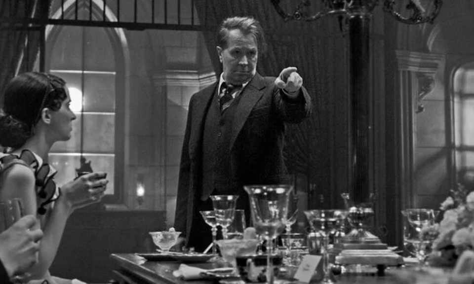 Será que o responsável pelos alicerces de “Citizen Kane” é, afinal, Mankiewicz e não o talento suado de um sobredotado? A lendária crítica de cinema Pauline Kael defendeu esta teoria. David Fincher, por sua vez, segue pela mesma perspetiva, recorrendo a um método algo detetivesco e mimetizando estética e narrativamente o célebre filme de 1941. O exercício, voluntariamente esboçado como um guião em desenvolvimento, insufla vida à tese do toque de Midas de Mankiewicz, sem nunca questionar nem apresentar uma visão dúbia do que terá acontecido. Vindo de um artesão de um engenhoso “thriller” como “Zodiac”, sempre em gradual dúvida e crente absoluto num clima de mistério, “Mank” está demasiado seguro nas suas convicções e com isso, a figura de Orson Welles (interpretado por Tom Burke) sai-se mal na fotografia.