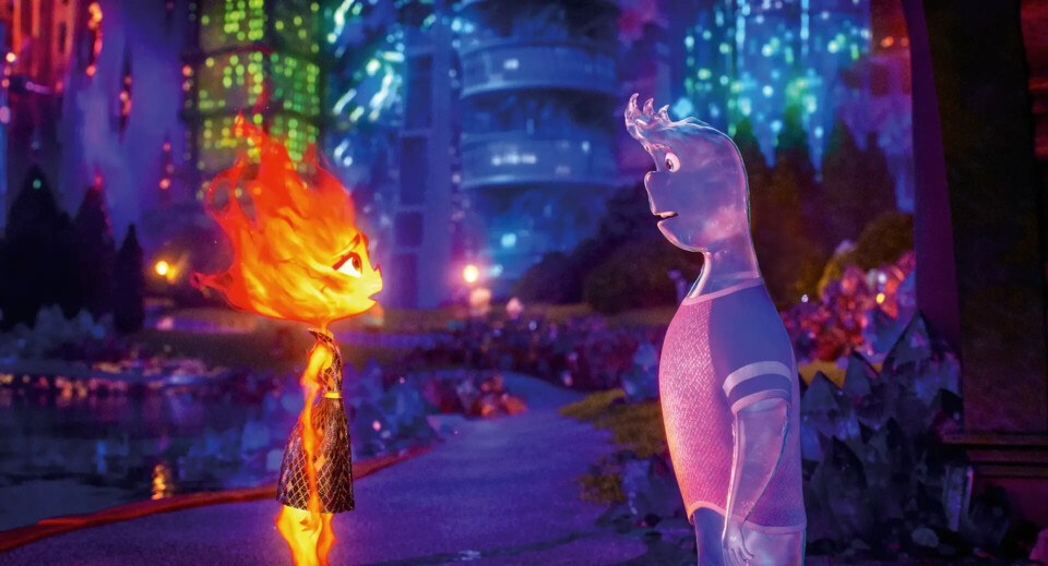 Basta ler em entrelinhas, e entender o nervosismo habitado neste “Elemental” (de Peter Sohn, assinante de um dos contos subvalorizados da produtora, “The Good Dinosaur”), história de ancestralidades e inclusão num fantasioso mundo onde os seus habitantes são, nada mais, nada menos, que seres elementares (e antropomórficos, é claro!); Água, Ar, Terra e os indesejados Fogo, oriundos do remoto e do exótico. E é numa metrópole que todos esses elementos se coexistem, mas não se misturam, remetendo os infames Fogo para guetos fora do centro da cidade. Quem conhece a realidade suburbana e as políticas de gentrificação hipocritamente disfarçadas de cosmopoliticidade irá reconhecer o flagelo que estes seres luminosos e ardentes são reduzidos, isto em contraste com os privilegiados Água ou os nobres e aristocratas Ar. Isto, dando uma ideia de classe social com uma condição de migrante enguiçado nas “ventas”, só que a temática (apesar das queixas de muitos colegas que “jogam à direita” e mais além) não seja o principal fio condutor de “Elemental”, antes disso o escape para romances shakespearianos e a pitada de conexões familiares do costume.