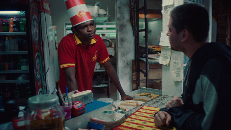 Algo que observei, tanto em “Carvão” como de forma mais pronunciada em “Pedágio”, é o facto de muitas personagens adotarem um discurso moralista em relação às outras, revelando-se moralmente hipócritas. Temos o exemplo da colega da Suelen [Aline Marta] e a sua relação com o adultério, isso também se aplica à questão da mãe e, possivelmente, ao próprio pastor. Não sei se isto é claro, mas há uma sugestão de que o pastor também seja gay.