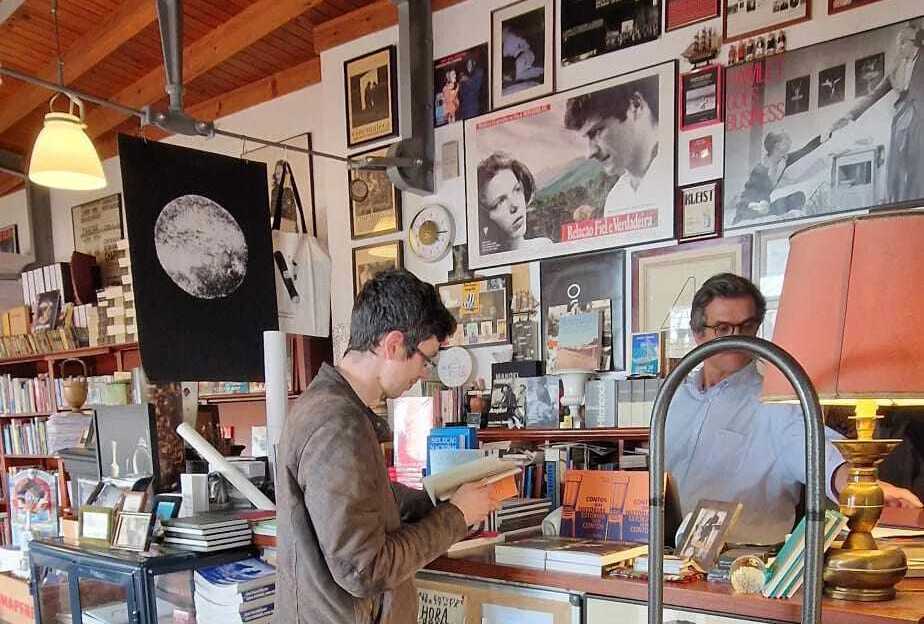 Naquele preciso instante, dois clientes exploram os cantos e recantos do espaço — não muito grande, é certo, 30 metros quadrados para sermos exactos, mas com uma voluntária desorganização no centro da livraria: pilhas de livros, revistas e outros coleccionáveis, raridades que só aqui parecem existir. “Este é uma jóia! Para ti, faço um desconto.” João exibe-me “Os Meninos de Ouro”, de Agustina Bessa-Luís, um livro claramente em segunda mão, de uma tiragem há muito extinta. “Se este livro falasse, que histórias teria me para contar sobre os seus antigos donos.” pensei eu.