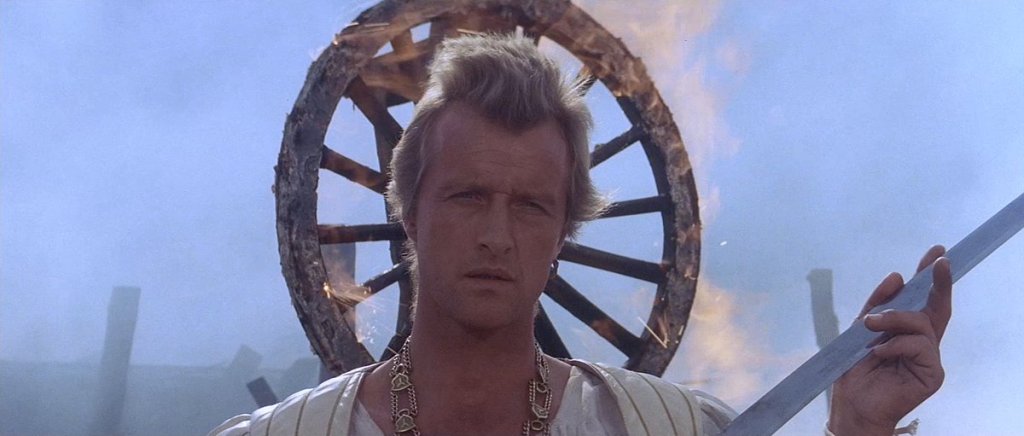 Mas de que trata, afinal, “Flesh + Blood”? A história decorre algures por volta de 1500, prometendo medievalismo, embora, por outro lado, se situe já nos finais do Renascimento, tempo de exaltação humanista, de valorização da ciência e de outras artes, de recuperação do pensamento clássico greco-romano, à luz dos engenhos e do progresso em várias frentes por vir; contudo, Verhoeven não desenha esse quadro: as trevas ainda habitam o coração destes homens, na sujidade fora dos centros de desenvolvimento civilizacional. Sabemos desse renascimento porque Leonardo Da Vinci é mencionado com admiração pelo filho do senhor feudal (recordando que o feudalismo foi uma das vítimas da corrente renascentista) tendo o nome de Steven (o actor australiano Tom Burlinson), que contesta constantemente o seu ambiente, feito de protociência ainda embrionária, de obscurantismo governado pela fé imperativa e de uma medicina igualmente rudimentar. Ainda assim, ele é apenas uma peça desta engrenagem que gira em torno de Martin (Rutger Hauer), mercenário que, após ter sido enganado, como muitos outros, pelas promessas de riqueza de um lorde em vias de reconquistar o seu reino, delineia, através de sinais e profetizações de um falso bispo e de uma danificada estátua de São Martinho encontrada no lodo, o seu destino divino, acreditando ser um santo segundo a lógica destas ocasiões, sinais e infortúnios; os seus seguidores partem com ele na tentativa de concretizar a promessa defraudada de ouro e conforto.
