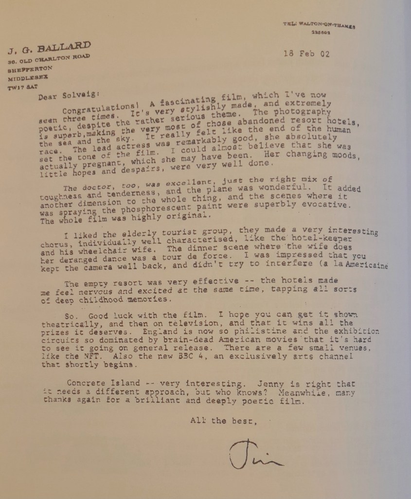 Solveig Nordlund falou com o Cinematograficamente Falando … nesta breve conversa sobre teatro, processos e ainda alguns toques à sua ficção, mas pouco, não fossem as recordações da Cornucópia tornarem-se secundarizadas; longe de mim tal desfeita … PS, a carta de Ballard constava no catálogo (ver final do texto).