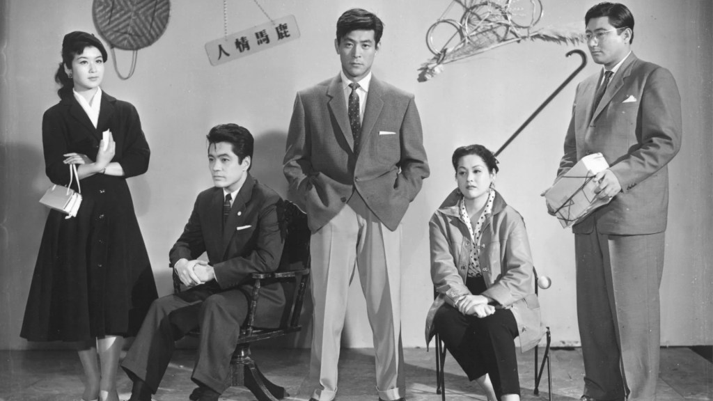 O primeiro filme de Shimizu na Daiei, “O Idiota Sentimental“, tem como base um livro de Matsutarô Kawaguchi (não é a única adaptação do autor pelo cineasta, contamos com “A Mother’s Journey”, 1958), mas nesta estreia no universo é evidente o cuidado na composição e na justeza para com as personagens femininas. Neste caso, Yuri (Rieko Sumi), uma cantora de cabaret cobiçada pelos seus clientes, nomeadamente por um jovem vendedor de motas em ascensão na sua empresa, que, para garantir uma vida de luxo à sua “concubina”, burla os seus compradores. Acaba preso por esse acto de vigarice. Yuri, por compaixão à mãe do jovem que a procura e desesperadamente lhe pede ajuda, tenta, de burlado a burlado, conseguir “arrancar” o perdão de todos ao seu enclausurado amante.